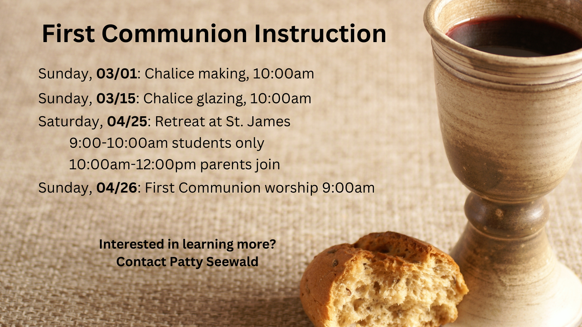 April 26: First Communion & Sunday Worship 9:00am / Sunday School 10:00am