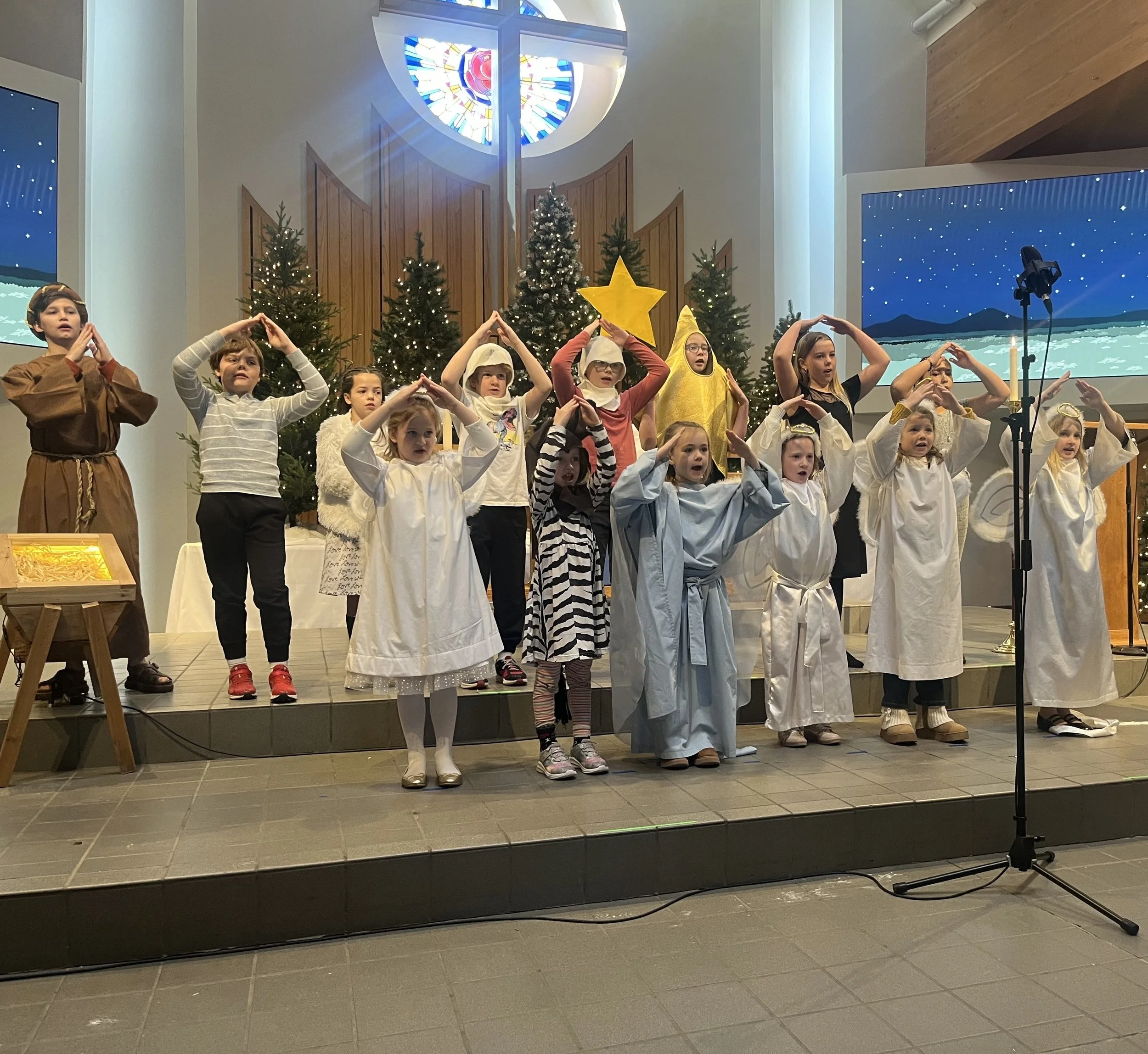 This week was the Children’s Christmas Program! Before worship, we gathered in one of the Sunday School classrooms to color pictures and do Christmas crafts. Then it was time for the kids to come into the Sanctuary to tell the Christmas story through the songs they have been practicing. They did such a great job! Afterwards we did have a regular Sunday School class where we heard from Luke 1:39-45 about the time when Mary visited Elizabeth. We then did more Christmas crafts and ate some of the many treats that were served during the coffee hour. Later, the kids in Grades 3-5 worked together to assemble a 3-D foam nativity for our classroom. It was a very fun day!